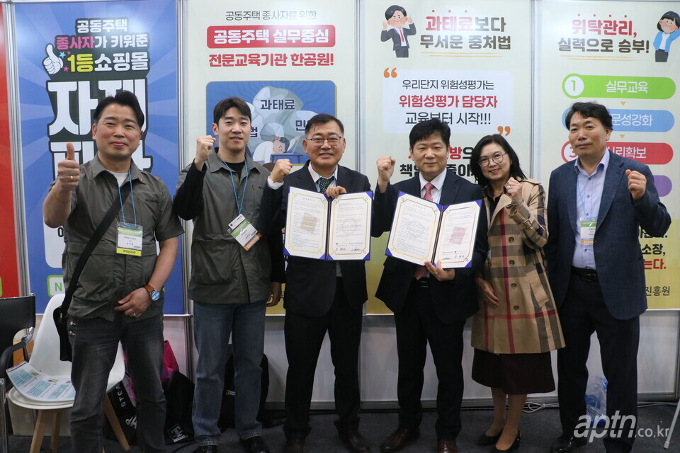 한국공동주택교육진흥원(이하 한공원)은 24~26일 공동주택관리산업박람회가 열린 부산 벡스코 현장에서 영남지역의 대표적 주택관리회사 중 하나인 하나종합관리, 디이씨오(DECO)와 각각 공동주택 관리 전문성 강화와 입주민 안전 및 재산 보호를 위한 업무협약을 체결했다.