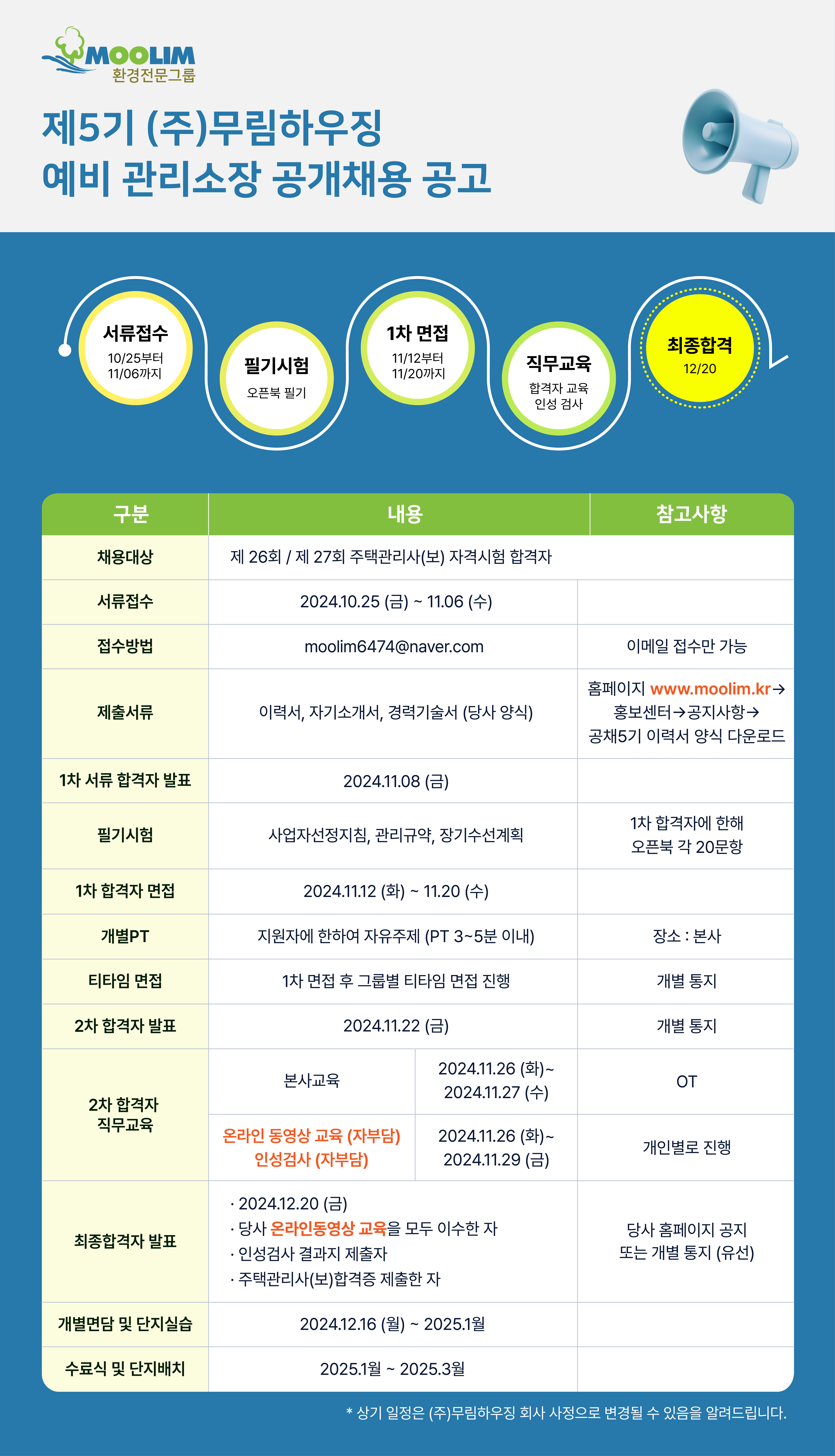 제 5기 (주)무림하우징 예비 관리소장 공개채용 공고